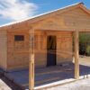Esta hermosa cabaña de 2 dormitorios cuenta con baño, cocina, comedor y una galería de 2,8 x 5,30 mts. Las ventanas son de aluminio pintada en epoxi – incluye vidrios – puerta de ingreso doble chapa inyectada y en interior puertas placa en madera con cerradura. El techo es una estructura de madera, cielorraso de machimbre de pino y cubierta con chapa cincalum trapezoidal cal. 25 antigranizo.
